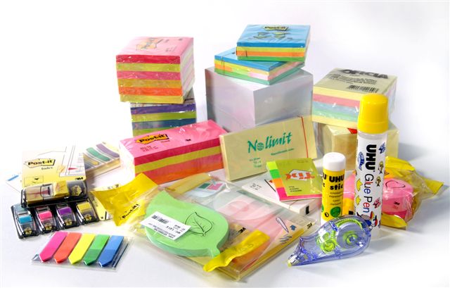 Drobni pisarniški material: lepilni trakovi, samolepilni lističi, korekturni program, lepila (MAPED, OPTIMA, PILOT, EDIGS, KORES …)